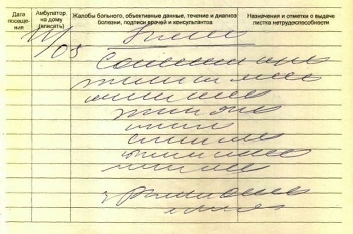 Запись врача реально хрен прочтёшь… Им бы шифровки писать…