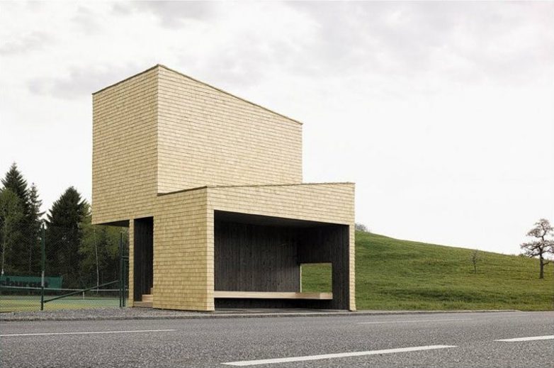 В поселке Крумбах, Австрия, как-то раз бесплатно отдыхали семь известнейших на весь мир архитекторов. В чем подвох? Они создали самую инновационную остановку, которую только смогли придумать. Эта минималистическая скульптура – дело рук бельгийских архитекторов Яна де Вильдера, Инге Винка и Джо Тайлле. Она якобы имитирует форму Альп.