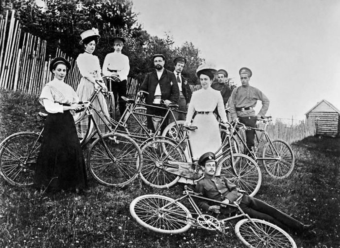 Семья новоторжского городского головы на велопрогулке. Российская Империя, 1900 год