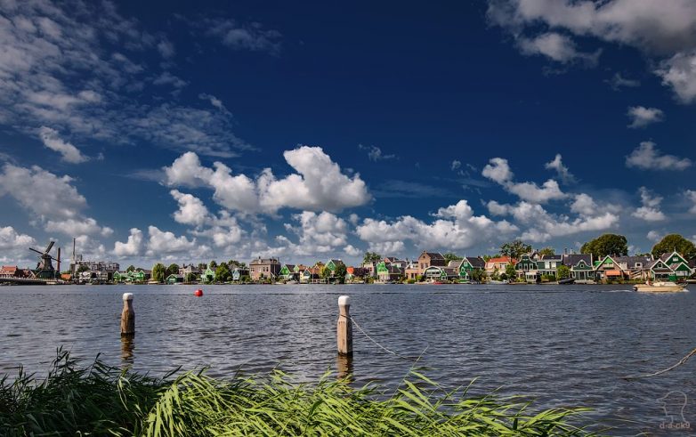 9. Вид на город Заандам, который расположен на противоположном берегу реки Заан: