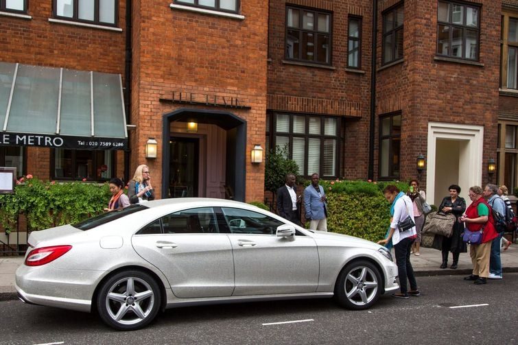 Прохожие Лондона столпились возле автомобиля марки Mercedes, чтобы увидеть и прикоснуться к нему. Толпу привлек необычный сверкающий внешний вид автомобиля, так как каждый миллиметр Мерседеса был покрыт стразами Сваровски.