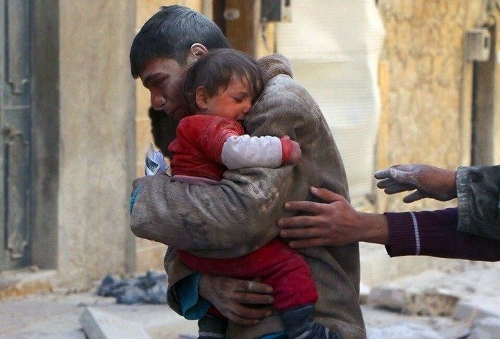 Парню удалось достать из-под обломков родную сестренку живой. Сирия.