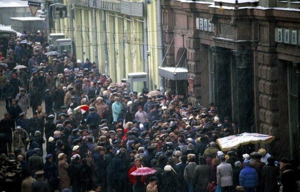 Из авторской подписи к снимку: «Очередь стоит шесть часов за азербайджанским коньяком»================