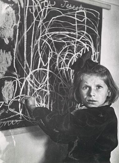 Терезка выросла в концентрационном лагере, после войны жила в интернате для детей с отставанием в развитии. На фото она рисует свой дом
