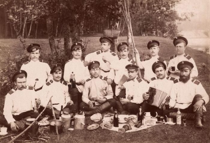 Все, все до единого офицеры на фото — с усами!!! Да и крестьяне с боярами и купцами тоже!!! Ну были же на Руси нормальные мужики… Наверное — если кому из них предложить одеть юбку или лифчик — ЗАРУБЯТ СРАЗУ, НАХРЕН… Вот разве что Чайковский…