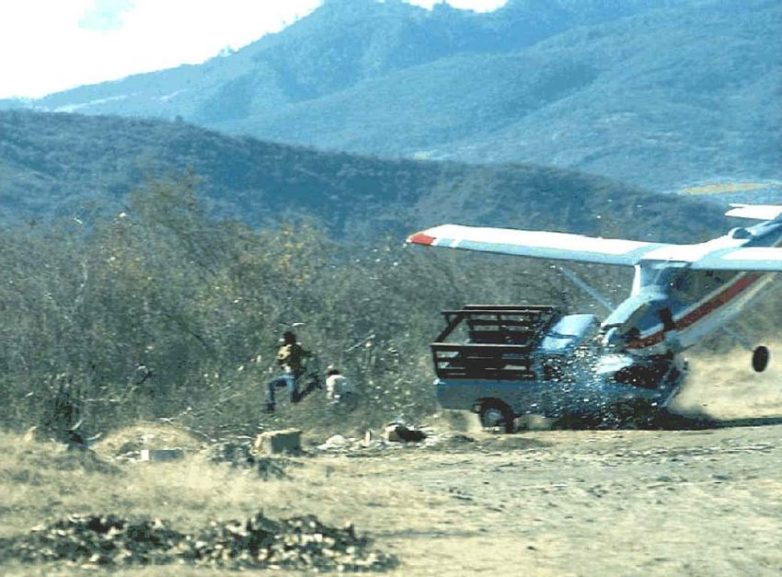 Из-за сильного встречного ветра приземляющийся самолёт врезался в грузовик, который стоял неподалёку от взлётной полосы, 1976