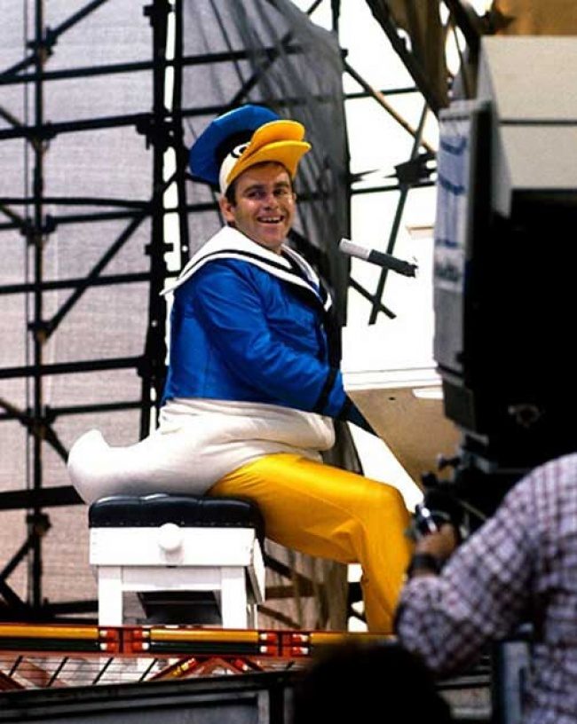 Элтон Джон выступает в костюме Дональда Дака, 1980 г.