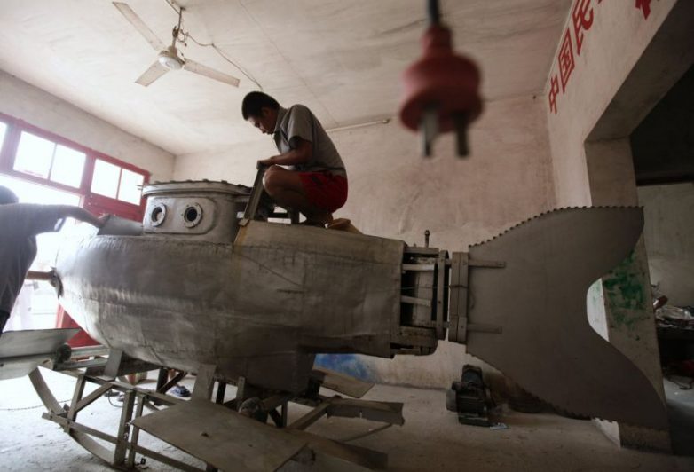 На создание этой подлодки у китайского крестьянина ушло пять месяцев. Подлодка успешно опустилась на глубину 9 м в озере рядом с его домом в местечке Данцзянкоу, провинция Хубэй.