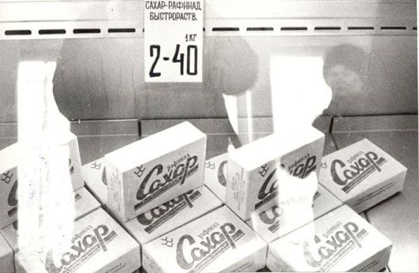 На фото футболист — Олег Блохин Киевское Динамо, а вот батон помню стоил 22коп сахар 59 коп. Это цены когда начало все дорожать