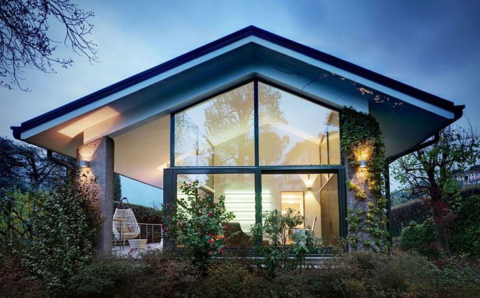 Дом у озера Комо позволяет любоваться не только водной гладью, но и чудесными пейзажами вокруг. Это дом простой и классической формы дома с двухскатной крышей.