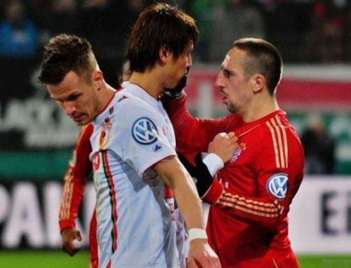 Странно, что у марширующего с такого ракурса не видно ноги. Похоже, в редакторе все же подрезали.