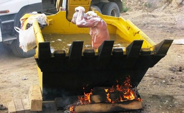 21. Забудьте про ванные комнаты, крутые русские парни могут использовать для этих целей ковш экскаватора.