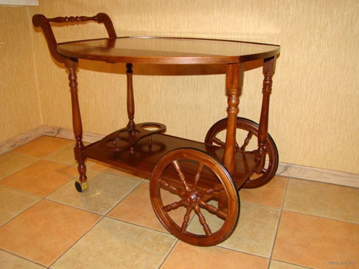 Воистину редкий зверь – сервировочный столик на колёсиках означал то, что хозяин бывал за рубежом. Неоднократно. Там-то он и приобрёл эту буржуазную (но восхитительную) манеру – подавать кофе и закуски гостям на специальном столике. В обычные дни столик скучал в углу, заваленный какой-нибудь фигнёй, но под приход гостей расхламлялся, оттирался от пятен и в ответственный момент гордо выкатывался в гостиную. Шок! Шок! Шок!