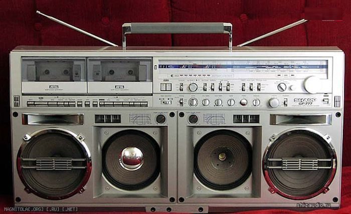 Ну «Шарп» же! Импортный, двухкассетный, желанный. А ещё «Панасоник», и «Сони». Для пущего шика — усилок и огромные колонки. Чем больше колонки, тем вернее погибнут от зависти соседи. Ну и видак, само собой.