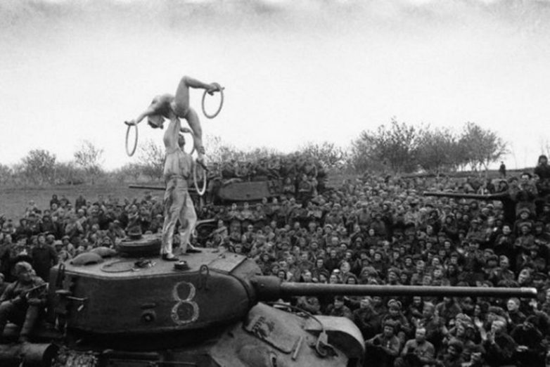 Представление для советских солдат во время остановки на пути в Берлин (1945).