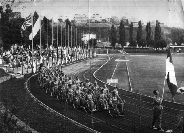 7. Церемония открытия первых официальных Паралимпийских игр, проходивших в Риме в 1960 году. 400 спортсменов из 23 стран соревновались в восьми дисциплинах.