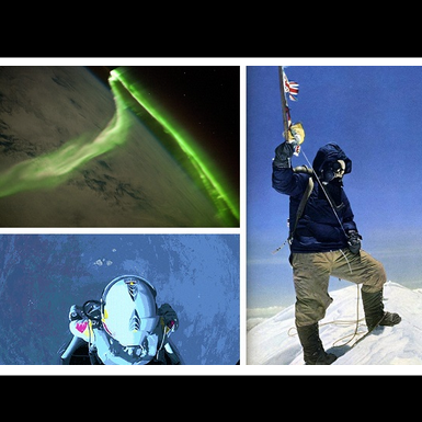 И вот Феликс Баумгартнер уже совершает прыжок из стратосферы, с высоты 39 километров над поверхностью Земли.