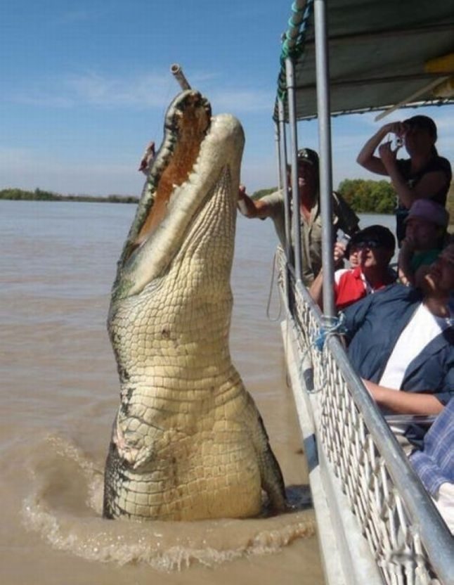 Крокодил кажись без лапы, вот его и подкармливают туристы…