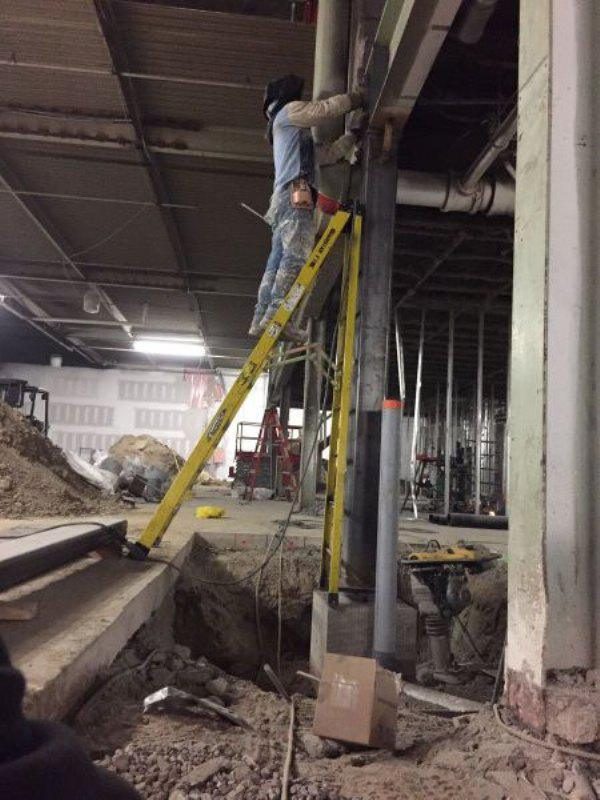 Видел как рабоче делали водостоки прямо под крышей четырёхэтажного здания стоя в ковше экскаватора.