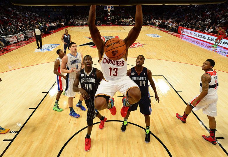12. Форвард команды «Кливленд Кавальерс» Тристан Томпсон удачно забросил мяч в корзину, «потеряв голову». (Reuters / Bob Donnan)