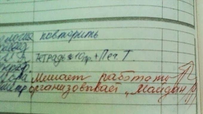 А мне написали в дневнике _«Пишет сочинения за всех в классе с ошибками. Все списывают ошибки одинаково. Из за этого у всего класса упала успеваемость по русскому языку ».