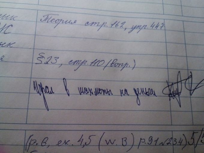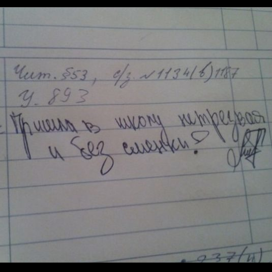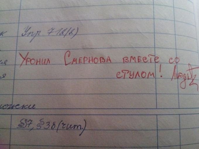 Весёлые ученики и не менее весёлые учителя проявляют своё чувство юмора не только в устной форме (на уроках и переменках), но и в записях, которые они делают в тетрадках и дневниках. Очень забавная подборка!