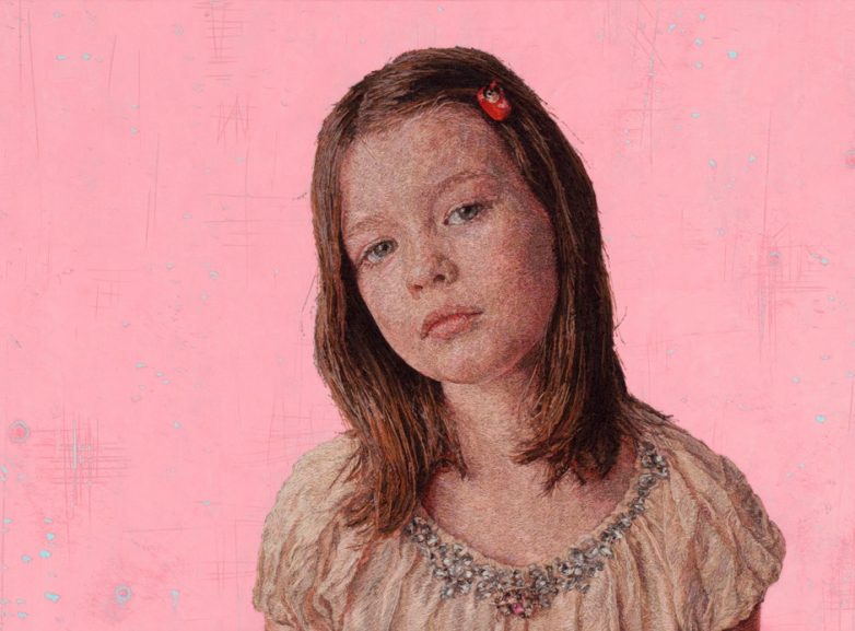 Художница делает около 100-150 фотографий, чтобы отобрать один подходящий снимок, полагаясь на который она приступает к вышиванию нитями на бельгийском льне. Размеры портретов: 20 х 25 см.