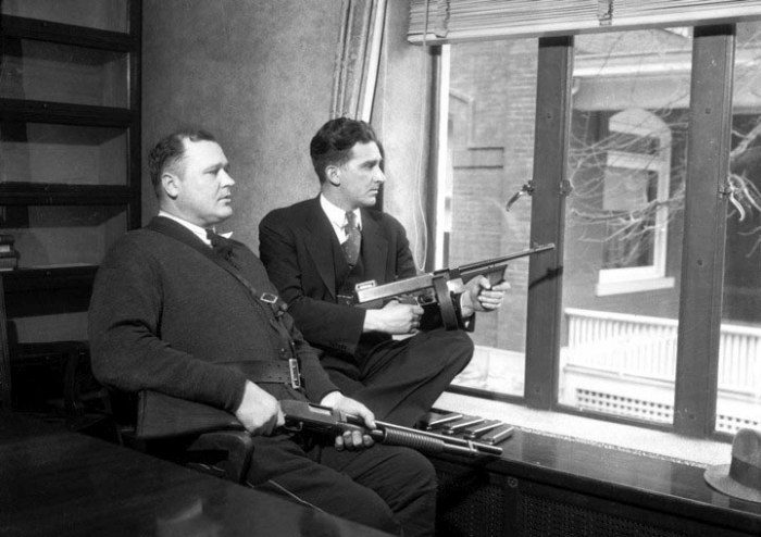 Охрана в здании суда во время процесса над Джоном Диллинджером. 1934 год.
