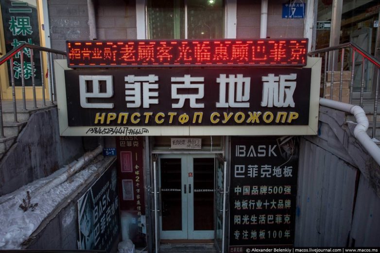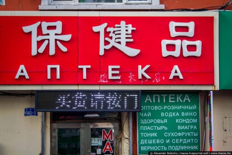 Китайский городок на том берегу строился и ширился. Каждый открываемый вновь магазинчик непременно имел русскую вывеску. Так и повелось, что практически всё в этом городе дублировано на кириллице. Есть только один нюанс — китайцы не могут понять всей глубины наших глубин, отчего вывески встречаются презабавнейшие. Смотрите сами и смейтесь на здоровье!