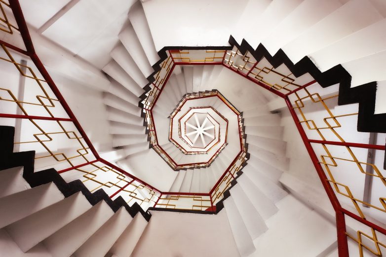 Если долго разглядывать эти лестницы, может голова закружиться. Их закрученность гипнотизирует и постоянно привлекает внимание урбан-фотографов и любителей архитектурной съёмки.