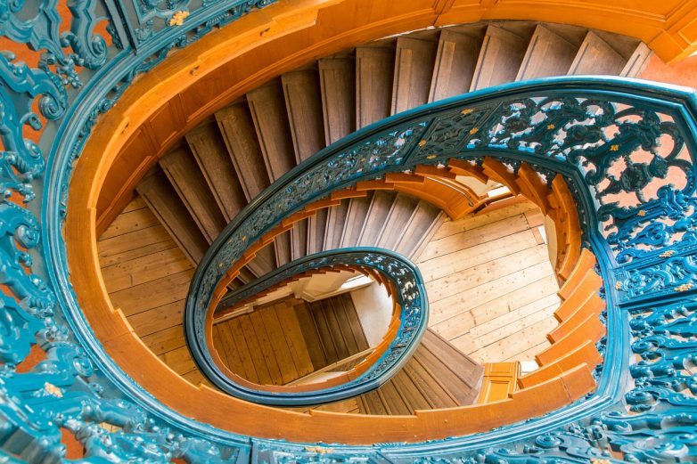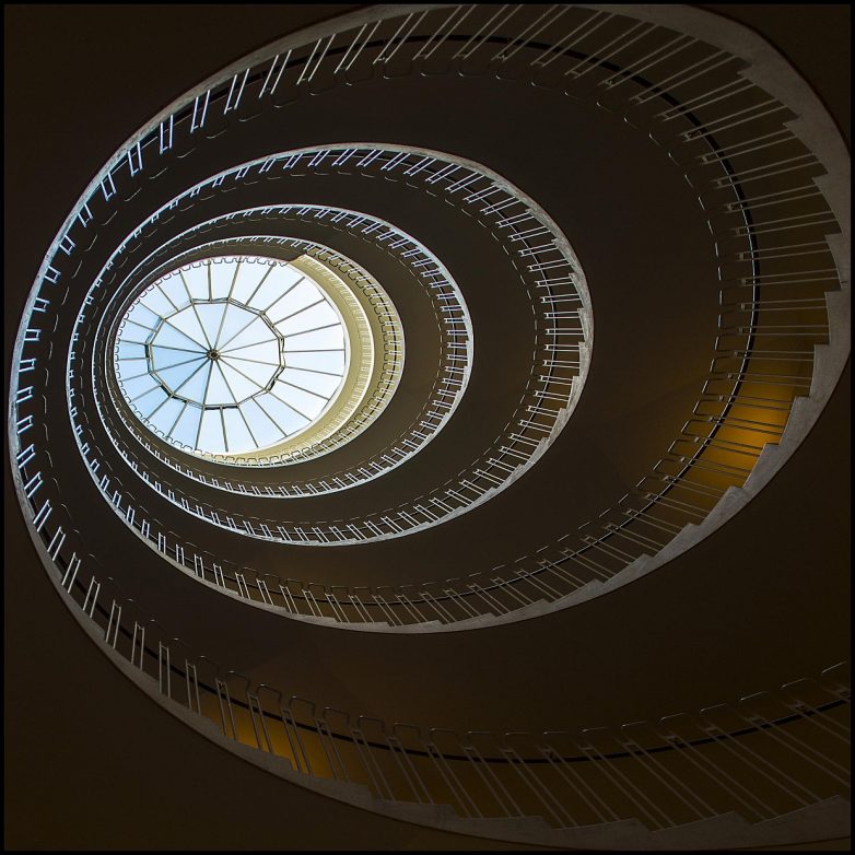 Винтовые лестницы хороши как в затейливом ажурном исполнении так и в простых дизайнерских решениях. Фотографы постоянно изыскивают ракурсы для наиболее интересного состава кадра с этими вихревыми чудесами инженерии.
