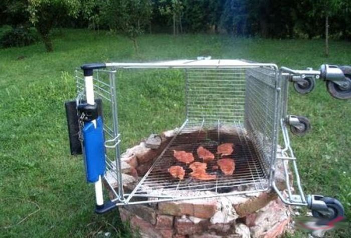 Мясо на магазинной тележке не есть хорошо! Так как она может быть оцинкованная или никелированное напыление.