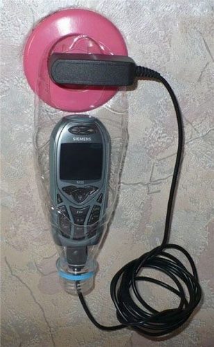 Мне понравилось устройство для поддержки телефона при зарядке! В поездах можно применять! И сделать можно из подручного средства — обычной пластиковой бутылки!