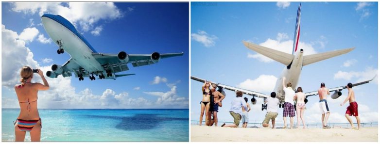 Добро пожаловать на Махо — один из самых необычных пляжей в мире. Он находится на Карибах в 300 км от Пуэрто-Рико. И отдыхающих сюда привлекает не теплый песок и синее море. Сюда отправляются за непередаваемыми острыми ощущениями, ведь буквально в 10-20 метрах над пляжем и туристами с грохотом проносятся заходящие на посадку гигантские авиалайнеры. Опасное, но завораживающее зрелище!
