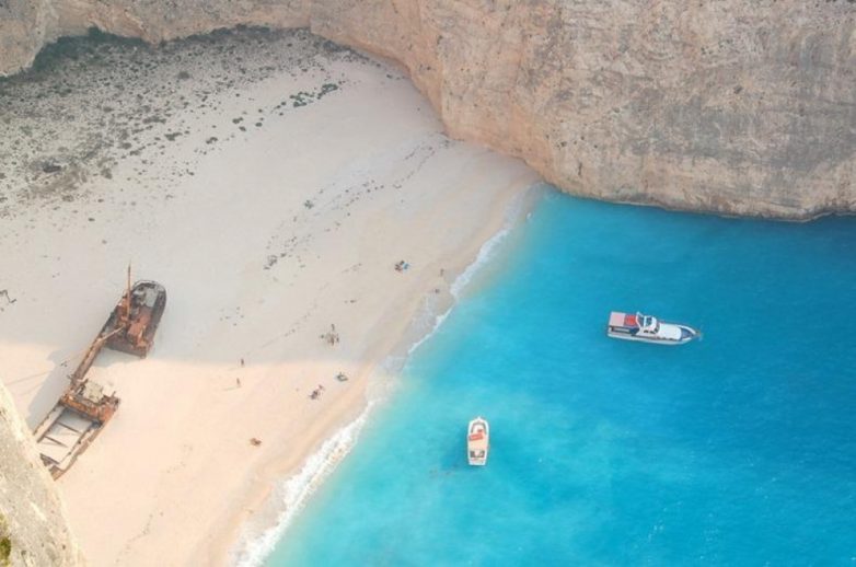 На греческом острове Закинф находится один из самых прекрасных пляжей в мире. Когда-то здесь потерпело крушение судно Панайотис, которое принадлежало контрабандистам. Корабль так и покоится до сих пор в белопесчаных дюнах.