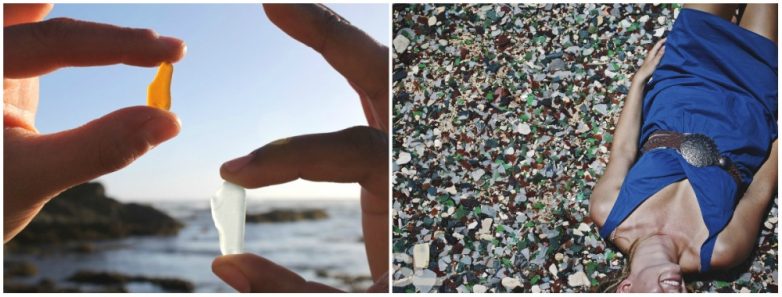 Недалеко от города Форт Брэгг в Калифорнии есть интересный пляж, усыпанный разноцветными стекляшками. В начале XX века здесь была городская свалка, потом, в 1967 году власти ее закрыли и в течение многих лет проводили очистку территории. Теперь мусора здесь нет, но берег покрыт мелкими, обточенными волнами стеклянными камушками.