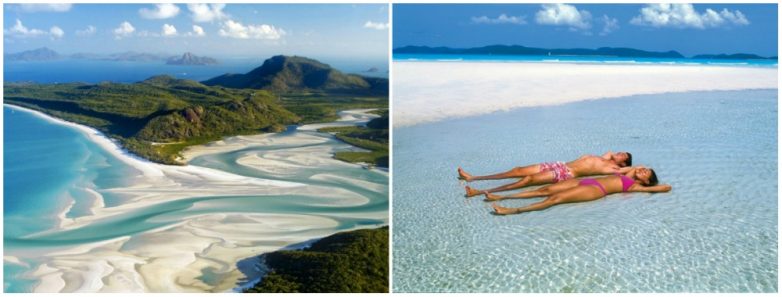 Уайтхэвен-Бич — это красивейшая 7-километровая береговая линия вдоль острова Витсандей. Всемирную известность пляж получил благодаря белоснежному песку. Его окрас обусловлен наличием чистого диоксида кремния (98 %), который придает ему такой оттенок.