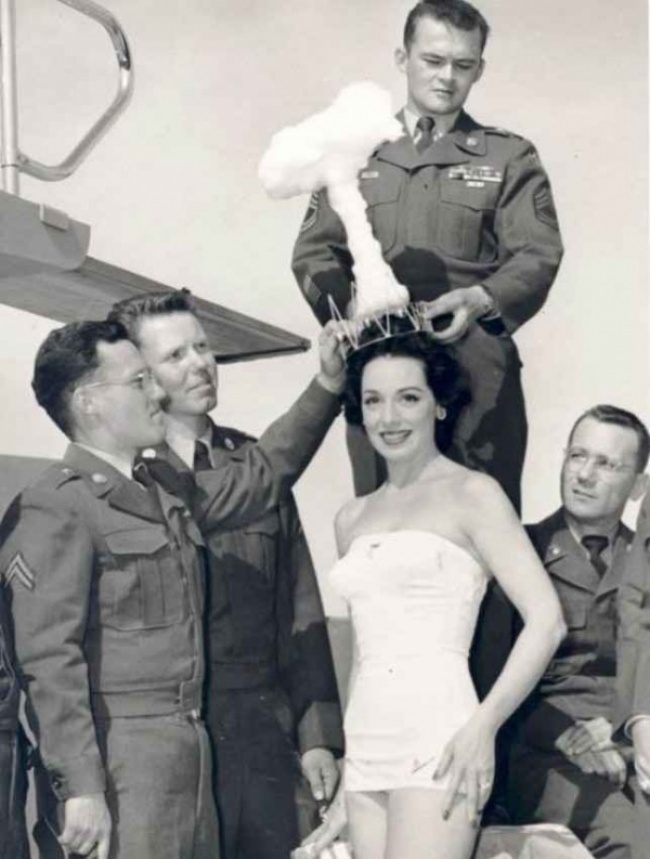 Победительница конкурса «Мисс атомная бомба». Невада, 1955 год.===