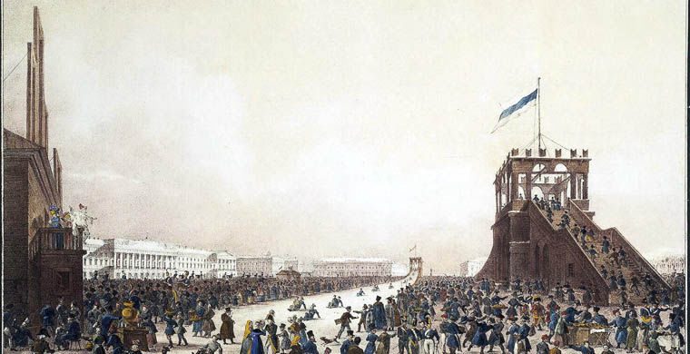 Ледяные горки имели высоту примерно 25 м и угол наклона около 50°, а для надежности укреплялись деревянными опорами. Некоторые историки полагают, что именно в России к саням впервые приделали колеса, чтобы Екатерина II могла кататься не только зимой, но и в теплое время — считается, что такие горки появились в садах Ораниенбаума в 1784 году. Впрочем, некоторые историки не согласны и утверждают, что горки с вагонетками на колесах появились в Париже в 1812 году. Любопытно, что уже тогда они назывались русскими: Les Montagnes Russes à Belleville («Русские горки в Бельвилле»).