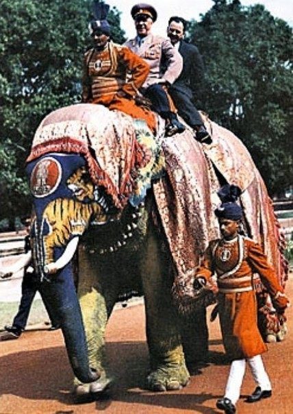 Маршал Жуков на слоне.Официальный визит в Индию в 1957 году.