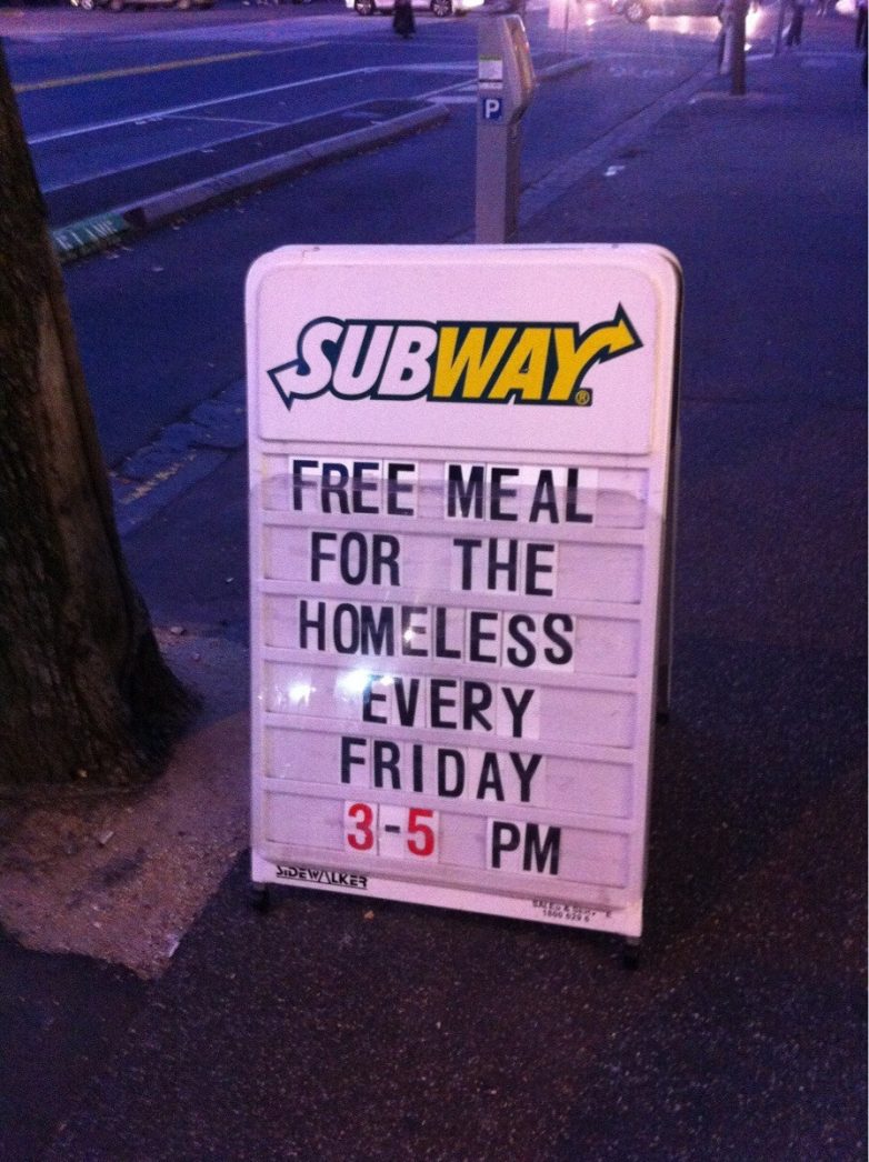 12. Бесплатная еда для бездомных в Subway