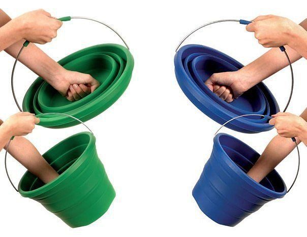 Много интересных идей, которые несомненно бы пригодились. А вот идея со складным ведром развеселила — у меня у самой была такая в 70 годах,(ребенок маленький) когда молоко продавали разливное и на работу ведь не возьмешь бидон- думала- неплохо бы придумали складной бидон! А вот оно чудо! Додумались, правда теперь уже не надо((((