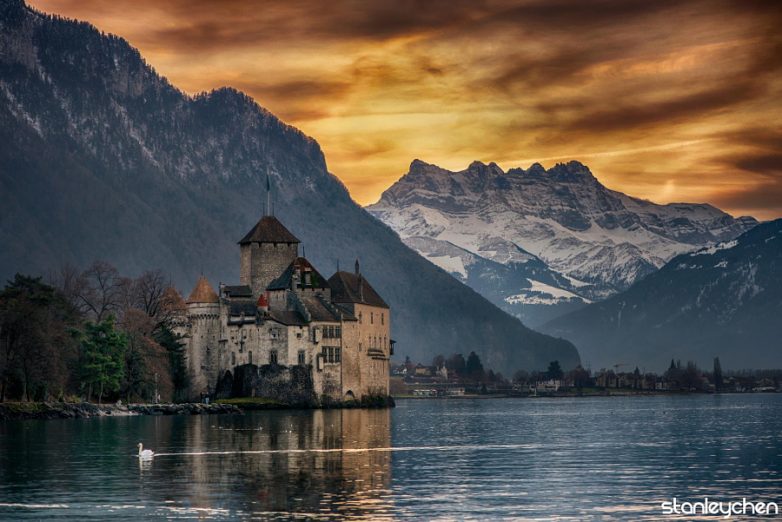 Маленький лебедь рядом с замком. Автор фото: Стэнли Чен Си