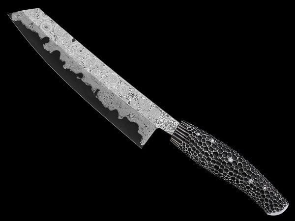 Результат совместной работы дизайнера и ювелира Квентина Нейла и гамбургской компании Hoffmann/Pieper, которая специализируется на изготовлении кухонных ножей. Ручка этого уникального кухонного прибора выполнена из серебра и украшена восемью крупными бриллиантами, а лезвие изготовлено из высокопрочной углеродной стали. Помимо самого ножа, комплект включает в себя брус для заточки и дизайнерскую деревянную коробку.