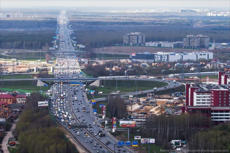 21. Вечная пробка на въезд с Киевского шоссе напротив Румянцево.