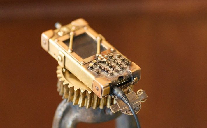Пару лет назад фотографии этого «стимпанкфона» разошлись по всему интернету. Кто бы мог подумать, что каждая его кнопочка действительно работает?