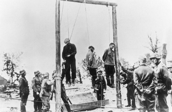 Июнь 1941 года, показательная казнь мирных жителей. На одной только территории БССР появилось порядка 260 концлагерей и мест массовых убийств мирных граждан.