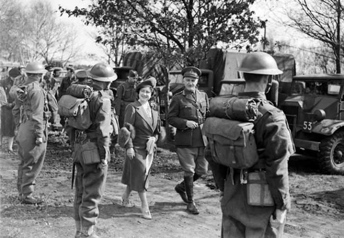 27 июня 1941 года, окрестности Лондона, король Георг VI с женой Елизаветой посещают канадский полк. От Канады во Второй мировой войне участие приняли около 1 млн солдат.