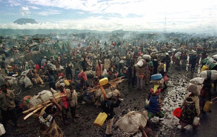 Беженцы покидают Руанду, спасаясь от геноцида, 1996 г.