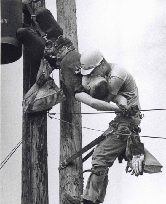 Один электрик делает искусственное дыхание другому после того, как того ударило током, 1967 г. Он выжил и умер в 2002 г.============ Я сначала подумал вот откуда всё пошло, потом прочитал…